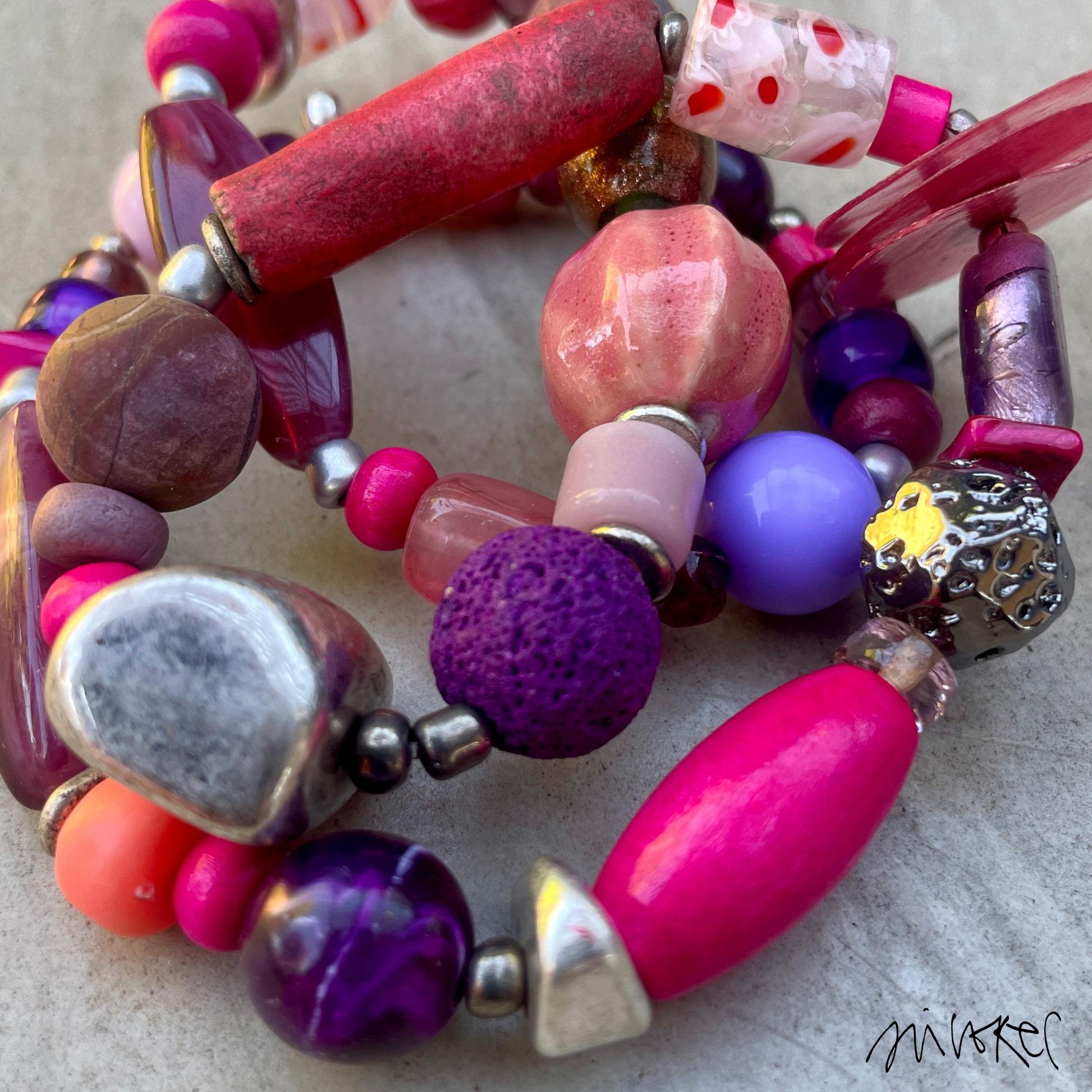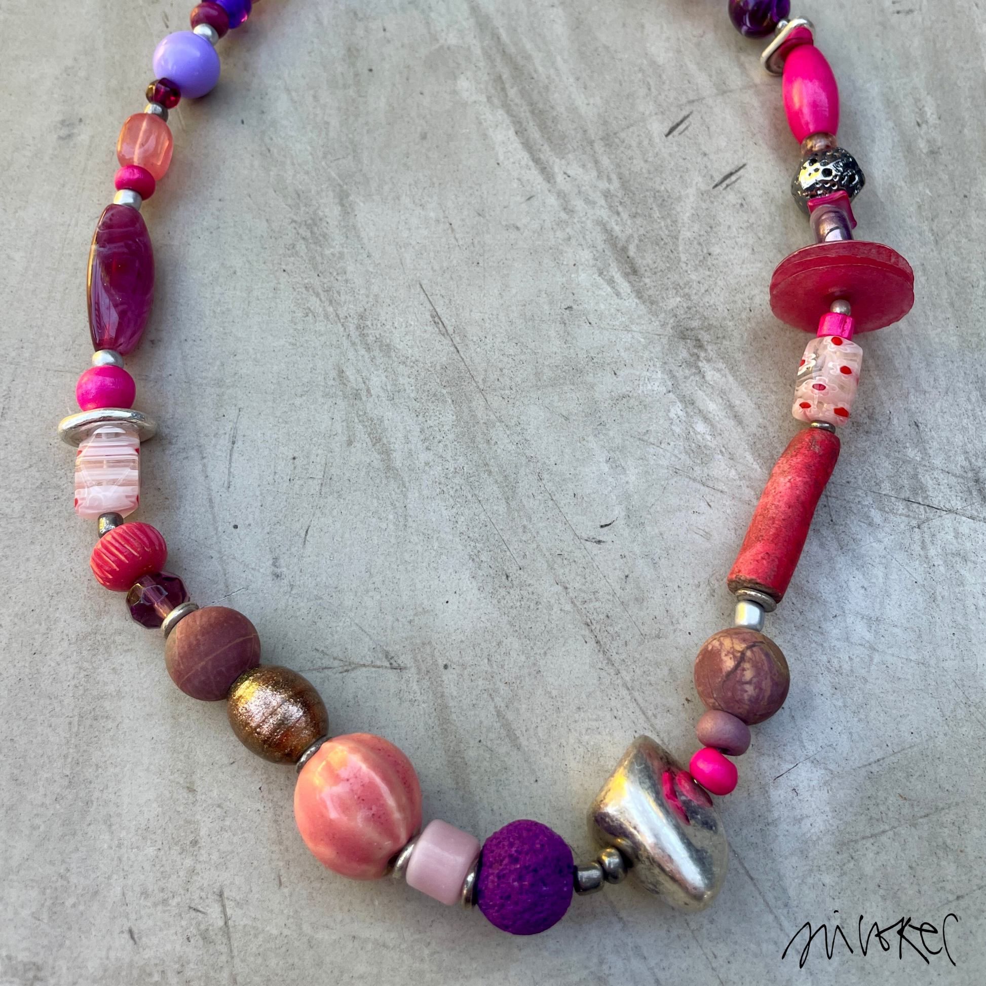 Cada diseño celebra el arte del reuso y belleza de lo impercfecto: collares que mezclan color, materiales, historia y sustentabilidad.
