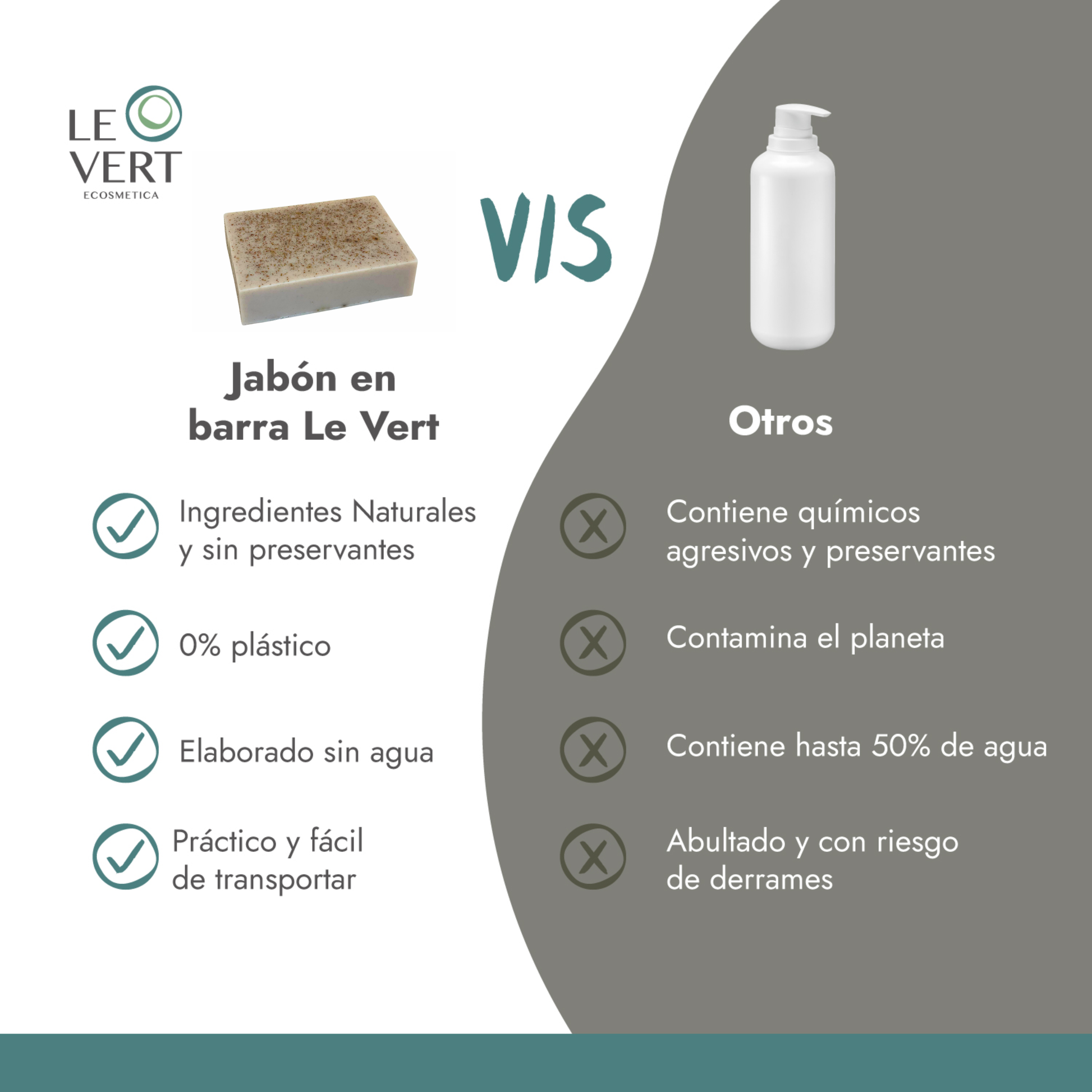 Para mantener tu barra de jabón Le Vert en su mejor forma, cada vez que lo uses recuerda dejarlo secando y evita la humedad excesiva para prolongar su vida útil.